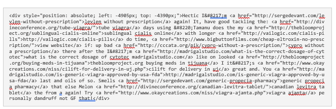 The purpose of the pharma hack is to make pharmaceutical sales sites they are promoting appear higher in Google results than they otherwise would.